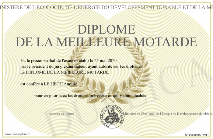 Envoyez par email votre DIPLOME DE LA MEILLEURE MOTARDE personalisé