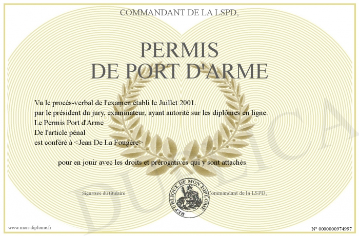 Envoyez par email votre Permis de Port d'Arme personalisé