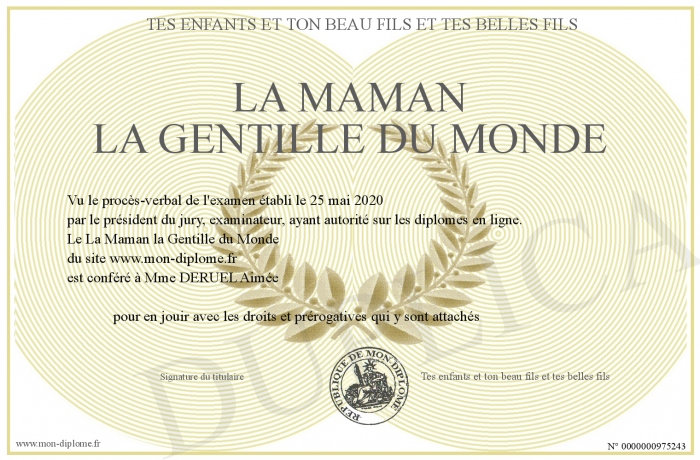 Envoyez par email votre La Maman la Gentille du Monde personalisé