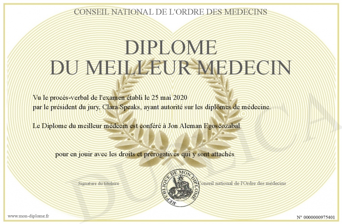 Envoyez par email votre Diplôme du meilleur médecin personalisé