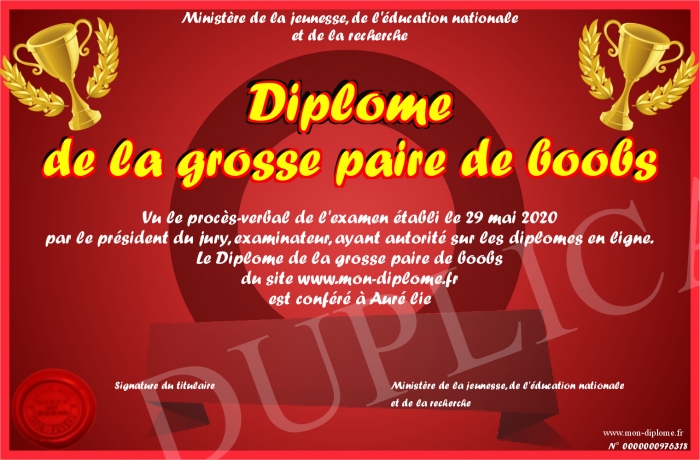 Envoyez par email votre Diplôme de la grosse paire de boobs personalisé