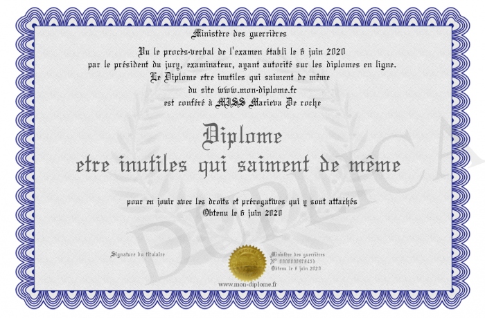 Envoyez par email votre Diplome etre inutiles qui saiment de même personalisé