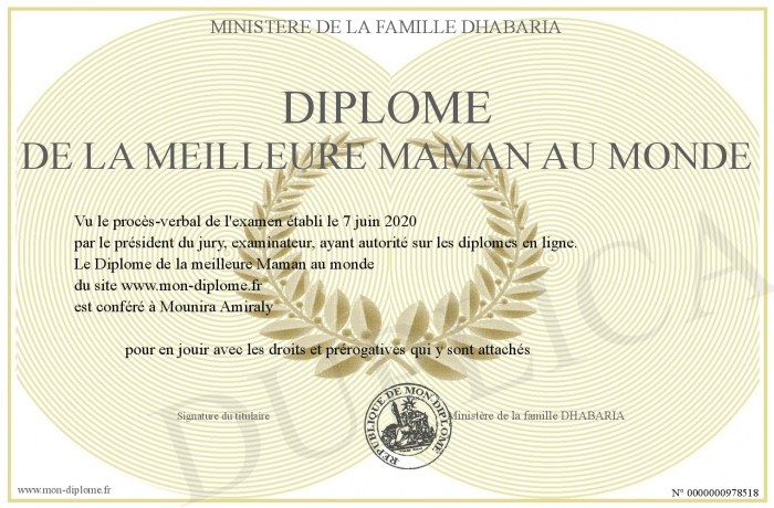Envoyez par email votre Diplôme de la meilleure Maman au monde personalisé