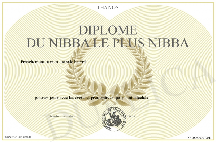 Envoyez par email votre Diplôme du nibba le plus nibba personalisé