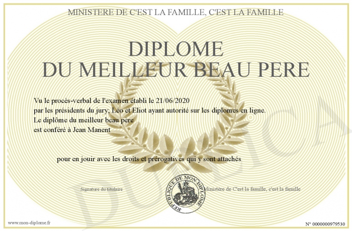 Envoyez par email votre Diplôme du meilleur beau père personalisé