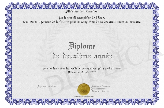 Envoyez par email votre Diplôme de deuxième année personalisé