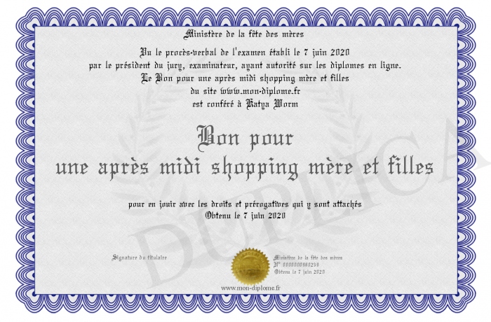 Envoyez par email votre Bon pour une après midi shopping mère et filles personalisé