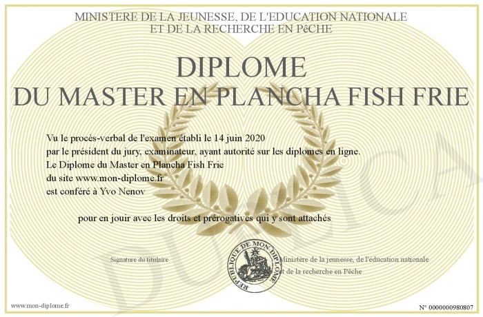 Envoyez par email votre Diplôme du Master en Plancha Fish Frie personalisé