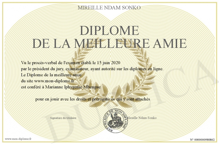 Envoyez par email votre Diplôme de la meilleure amie personalisé