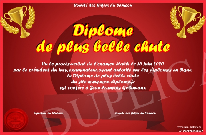 Envoyez par email votre Diplome de plus belle chute personalisé