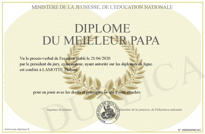 Envoyez par email votre Diplôme du meilleur papa personalisé