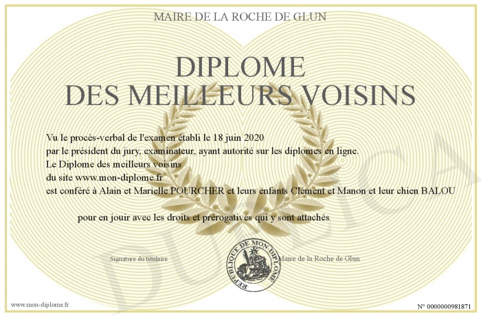 Envoyez par email votre Diplôme des meilleurs voisins personalisé