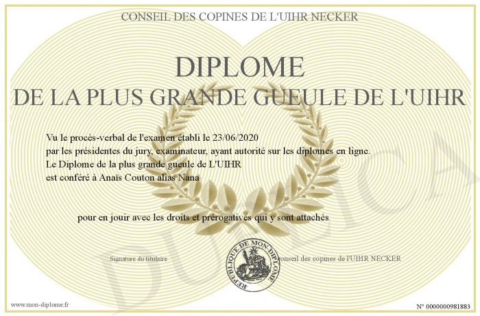 Envoyez par email votre Diplôme de la plus grande gueule de L'UIHR personalisé
