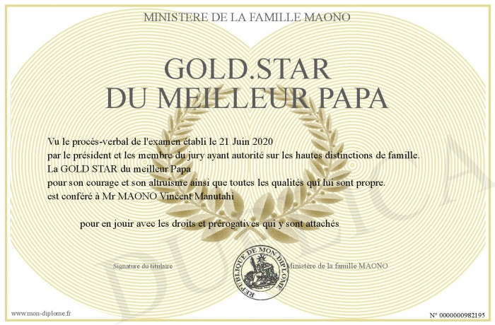 Envoyez par email votre GOLD.STAR du meilleur Papa personalisé