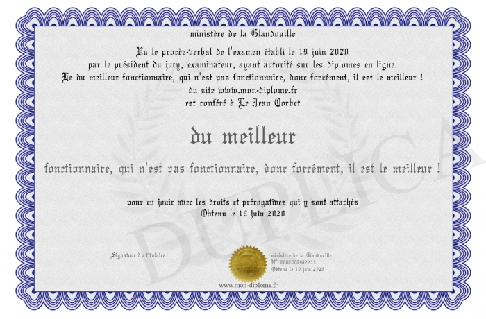 Envoyez par email votre du meilleur fonctionnaire, qui n'est pas fonctionnaire, donc forcément, il est le meilleur ! personalisé