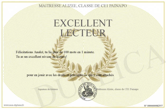 envoyé par le Maîtresse Alizée, classe de CE1 Painapo !