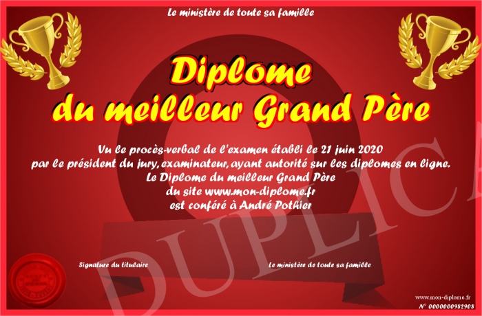 Envoyez par email votre Diplôme du meilleur Grand Père personalisé