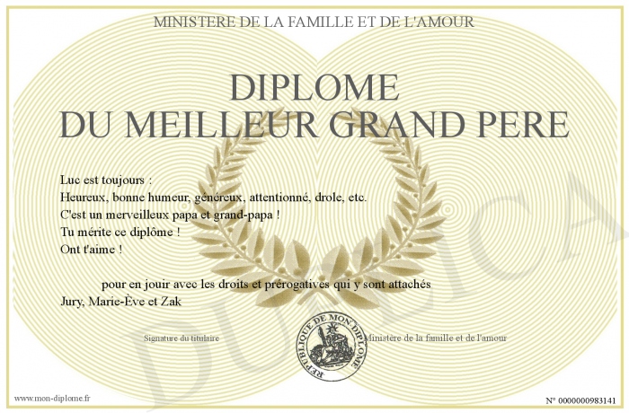 Envoyez par email votre Diplôme du meilleur grand père personalisé
