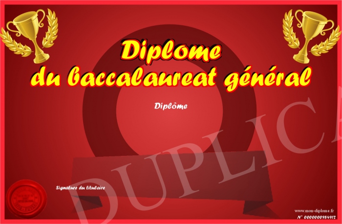 Envoyez par email votre Diplôme du baccalaureat général personalisé