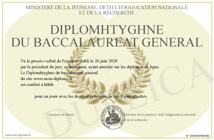 Envoyez par email votre Diplômhtyghne du baccalaureat général personalisé