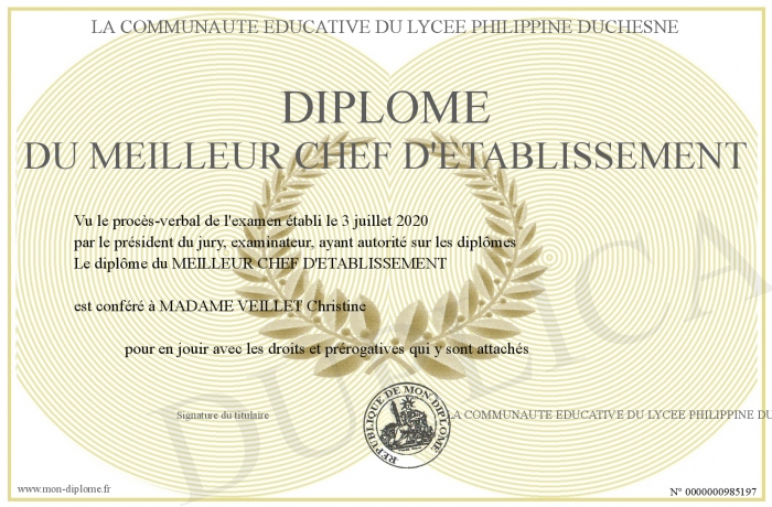 Envoyez par email votre Diplôme du meilleur chef d'établissement personalisé