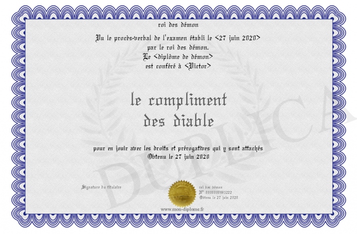 Envoyez par email votre le compliment des diable personalisé