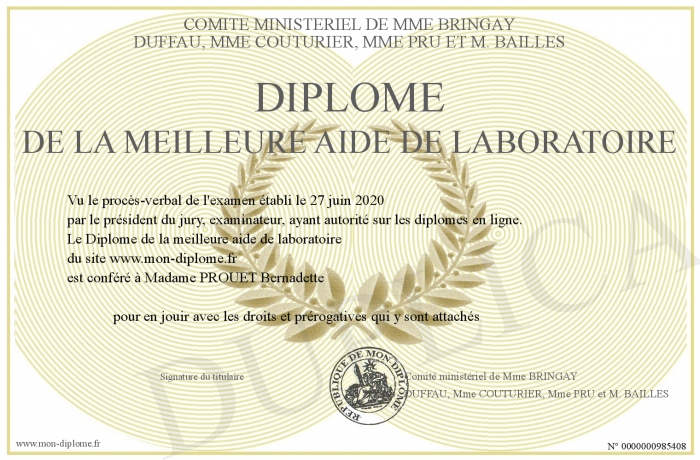 Envoyez par email votre Diplome de la meilleure aide de laboratoire personalisé