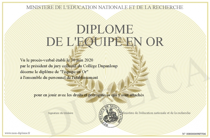 Envoyez par email votre Diplôme de l'équipe en Or personalisé