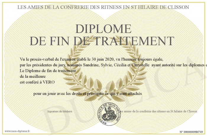 Envoyez par email votre Diplôme de fin de traitement personalisé