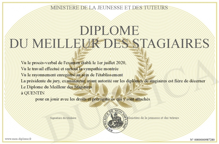 Envoyez par email votre Diplôme du Meilleur des Stagiaires personalisé