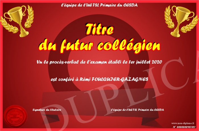envoyé par le l'équipe de l'UE TSL Primaire du CESDA !