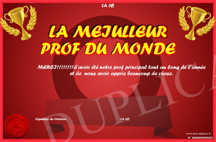 Envoyez par email votre LA MEIULLEUR PROF DU MONDE personalisé