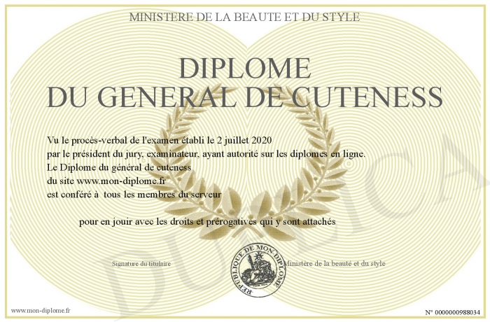 Envoyez par email votre Diplôme du général de cuteness personalisé
