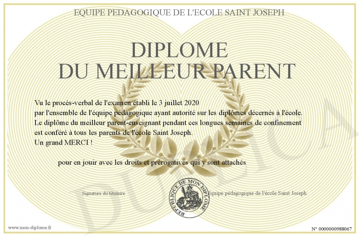 Envoyez par email votre Diplôme du meilleur parent personalisé