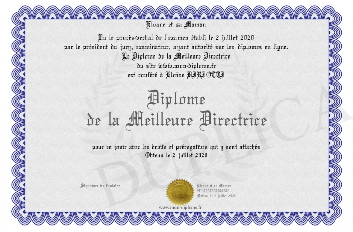 Envoyez par email votre Diplôme de la Meilleure Directrice personalisé