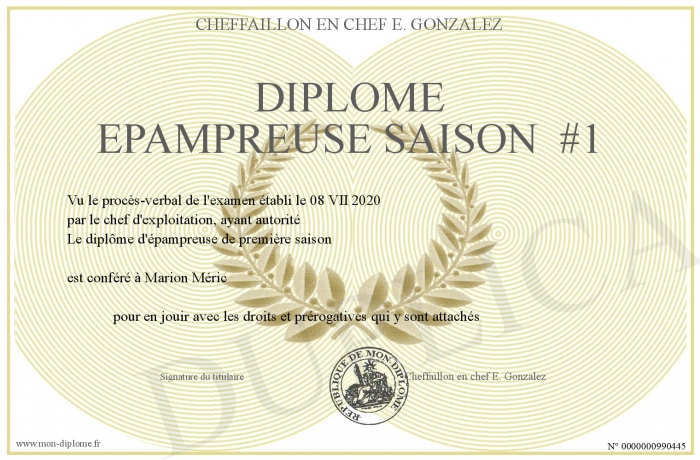 Envoyez par email votre Diplôme Epampreuse Saison #1 personalisé