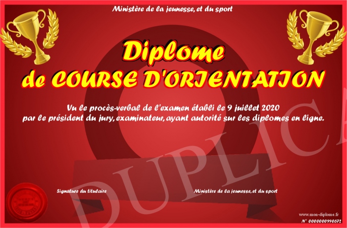 Envoyez par email votre Diplôme de COURSE D'ORIENTATION personalisé