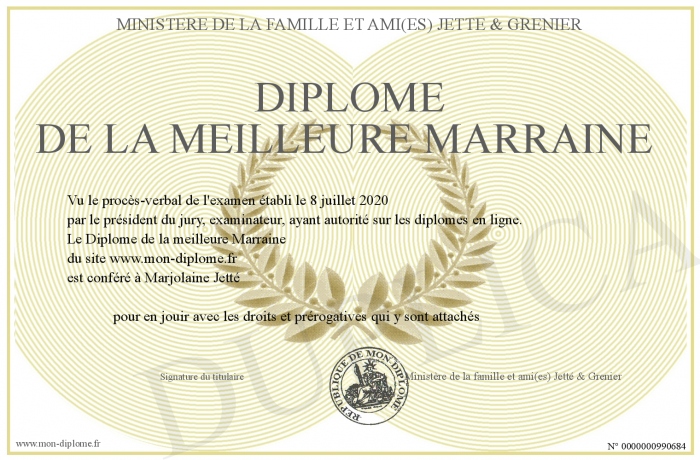 Envoyez par email votre Diplôme de la meilleure Marraine personalisé