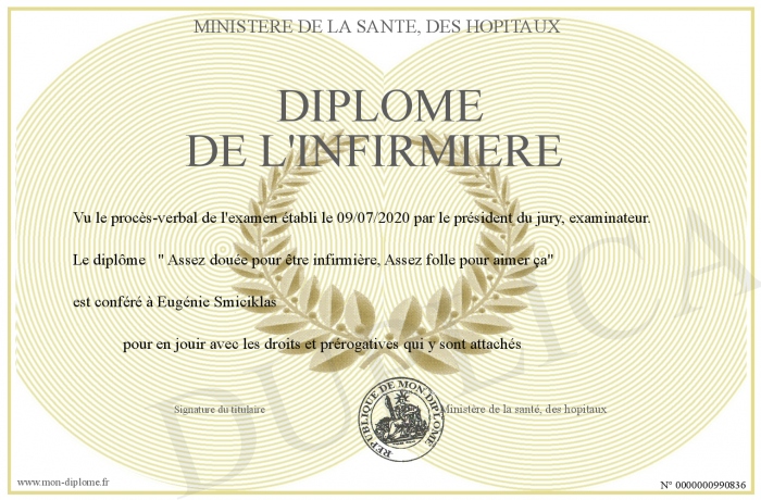 Envoyez par email votre Diplôme de l'Infirmière personalisé