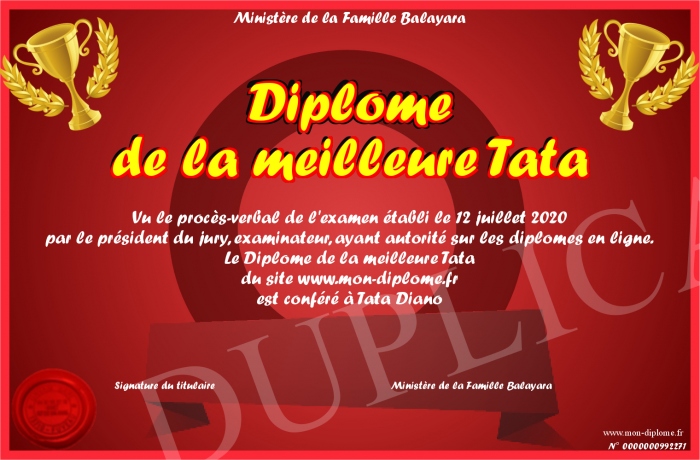 Envoyez par email votre Diplôme de la meilleure Tata personalisé