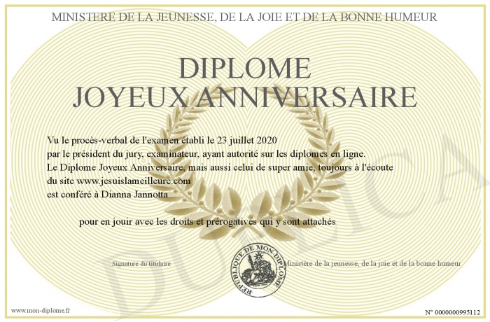Envoyez par email votre Diplôme Joyeux Anniversaire personalisé