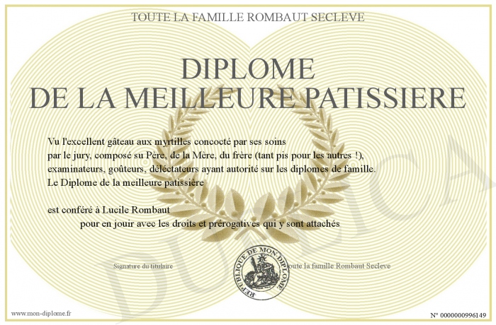 Envoyez par email votre Diplôme de la meilleure patissière personalisé