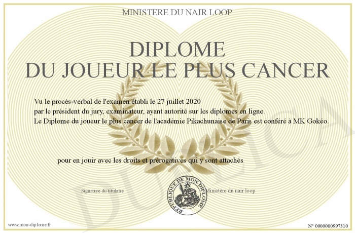 Envoyez par email votre Diplôme du joueur le plus cancer personalisé