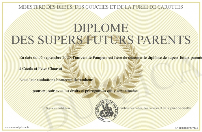 Envoyez par email votre Diplôme des supers futurs parents personalisé