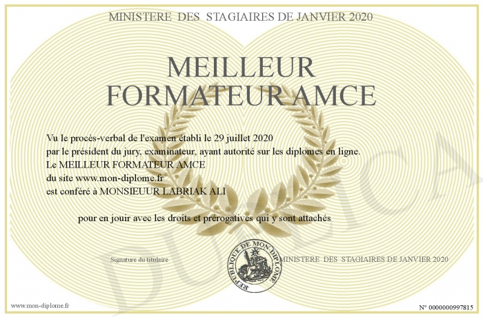 Envoyez par email votre MEILLEUR FORMATEUR AMCE personalisé