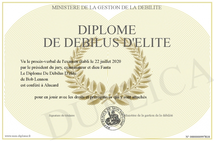 Envoyez par email votre Diplôme De Débilus D'élite personalisé