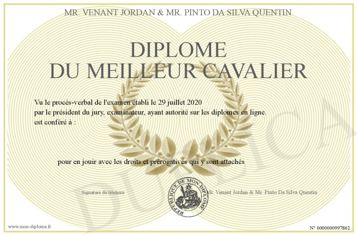 Envoyez par email votre Diplôme du Meilleur Cavalier personalisé