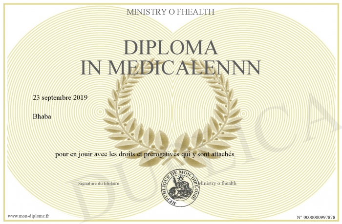 Envoyez par email votre Diploma in MEDICALENNN personalisé