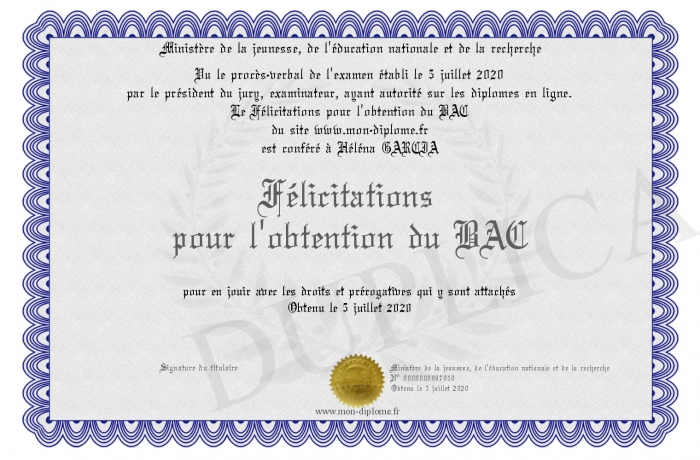 Envoyez par email votre Félicitations pour l'obtention du BAC personalisé