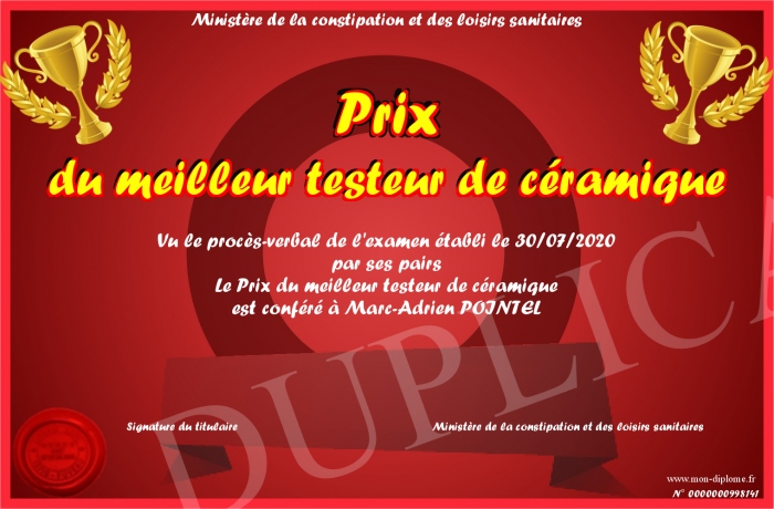 Envoyez par email votre Prix du meilleur testeur de céramique personalisé